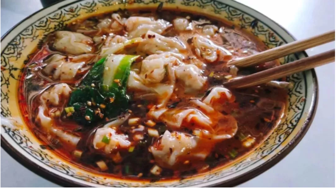 对于乐山人来说,早上能吃一碗热气腾腾的抄手,那么接下来绝对是元气满满的一天。一口下去先是爽滑的皮再是满满的肉,加上麻辣鲜香的底汤,简直爽翻天。