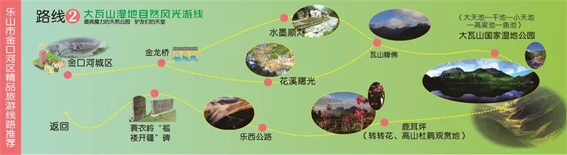 城区——金龙大桥——水墨顺河或者花溪曙光——瓦山睡佛——大瓦山国家湿地公园(大天池—干池—小天池—高粱池—鱼池)——鹿耳坪(天然氧吧)——乐西公路——蓑衣岭“蓝缕开疆”碑——返回城区