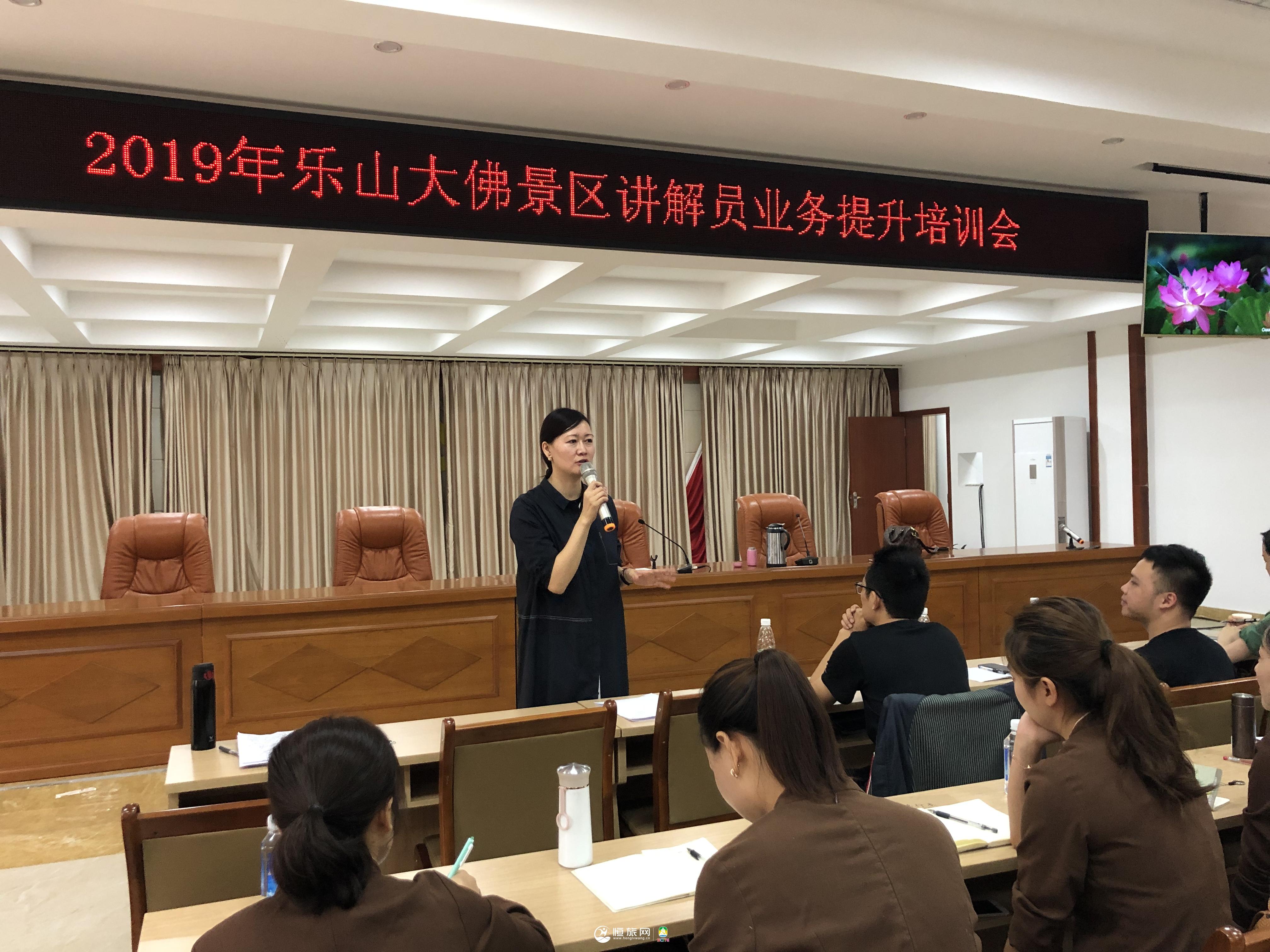 为全面提高景区讲解员综合素质,为大会提供优质讲解服务,集团公司特邀乐山师范学院教授、乐山市旅游协会资深礼仪老师、讲解服务专家对大佛国旅20多名讲解员进行统一培训,开设化妆、礼仪、讲解技巧等课程,进一步提升工作人员服务礼仪、讲解水平。