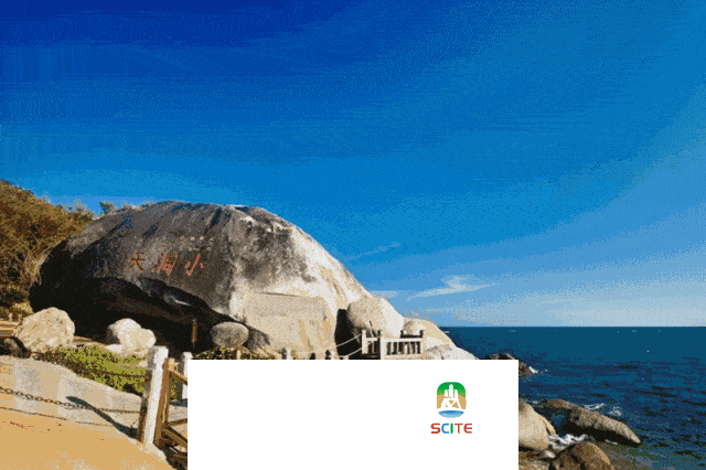 景区海湾沙滩上大小百块石耸立,天涯石”、“海角石”、”日月石”和“南天一柱“突兀其间,上有众多石刻。