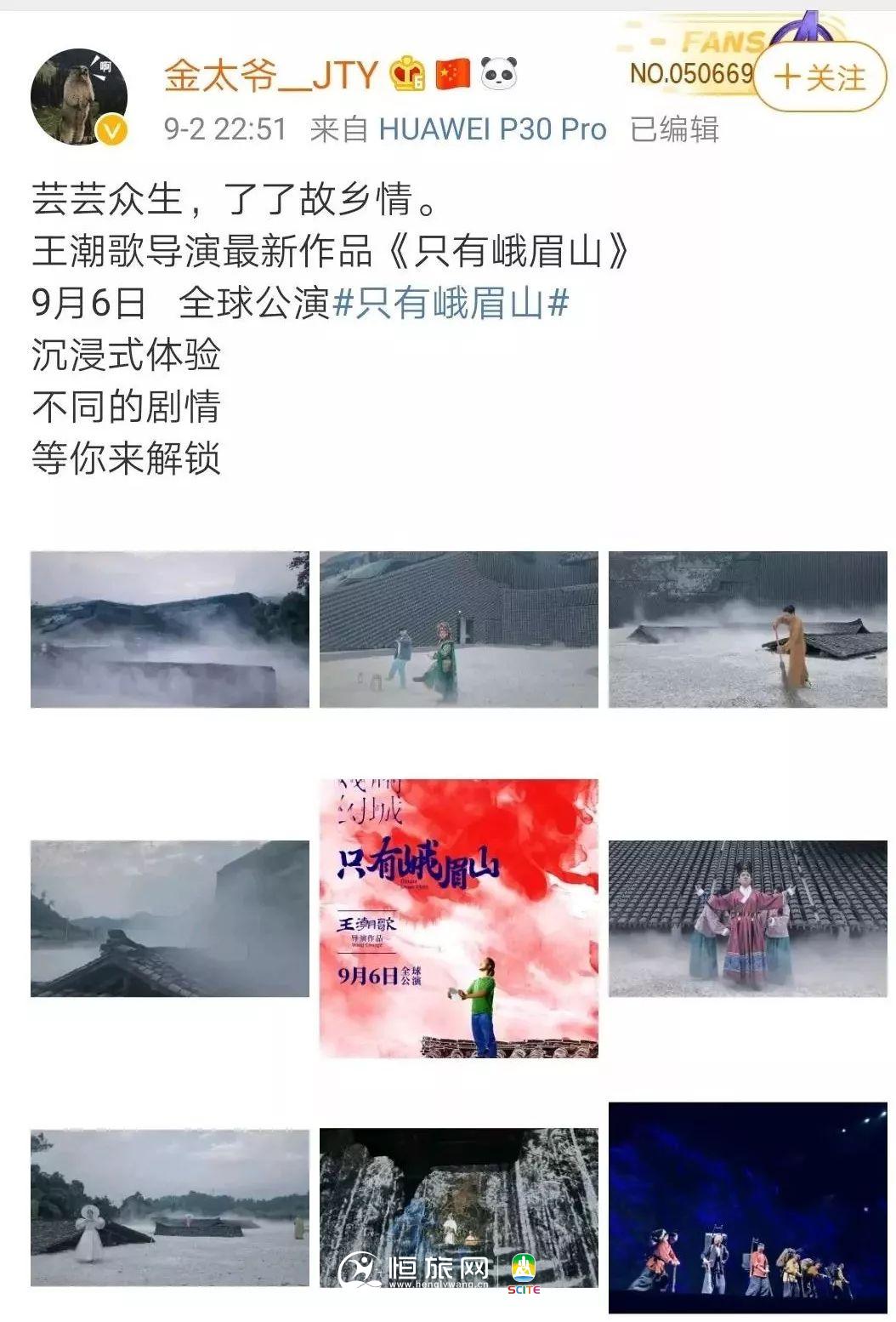 9月6日新浪微博查看:66666回复:66前所未有的戏剧幻城形式,为观众打造一场视觉与心灵洗礼的中国文化盛宴,向世界展现中国文化魅力与名山风采。