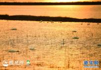 成群的天鹅在迁徙途中飞临湖边休息、觅食。