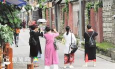在顺城街,青石板铺就的街面、绵延的古朴景观墙以及穿越时空的电影时光广场,让整条街道显得古色古香。