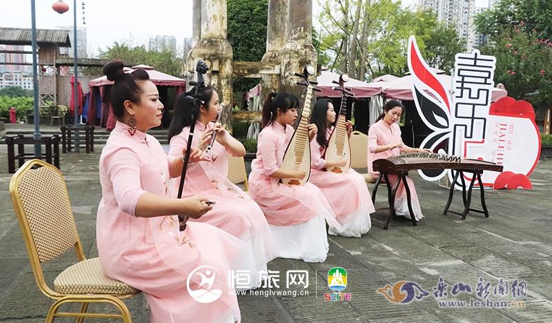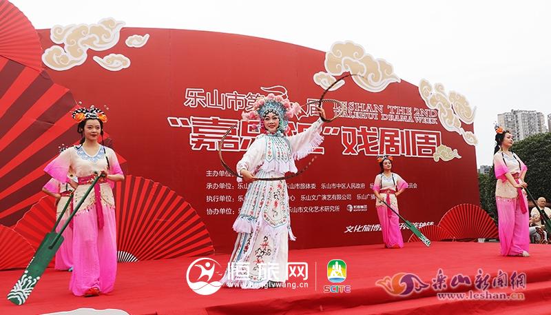 上午10点40左右,位于嘉州长卷·天街的嘉乐门人头攒动。现场鼓乐阵阵,诵声朗朗。在情景诗朗诵《峨眉山上的白雪》结束后,一声嘹亮的川剧念白“开街”传来,正式拉开了本届戏剧周的序幕。