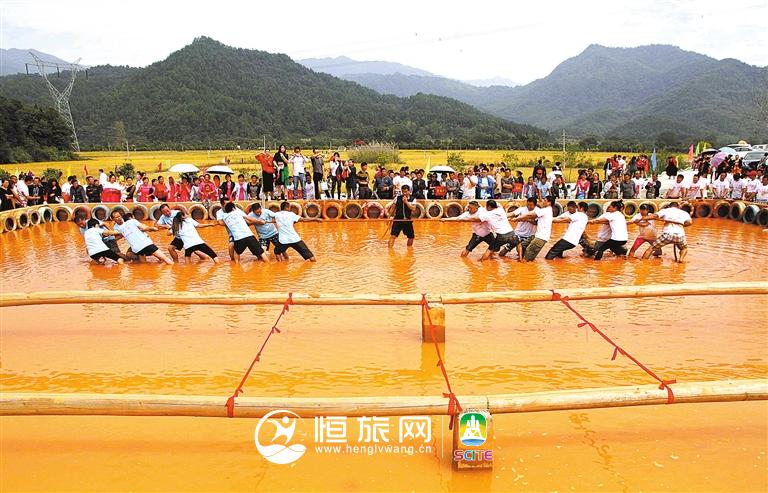 9月20日,一场以“金秋乡村美如画,丰收田野比高下”为主题的农民运动会在江西省靖安县高湖镇古楠村举行。来自全镇10个村的38支农民代表队在黄泥浆里进行了拔河、五人六足跑、过独木桥接力、踩高跷等17个趣味单项比拼,喜迎我国首个农民丰收节的到来。