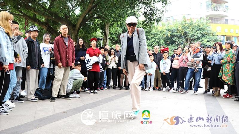 据游客文雯介绍,“尬舞”的几位年轻人是她的同伴,大家都是四川大学街舞社的成员。“我们是专程来乐山看大佛的,正准备去排队,就看到老太太在这儿跳舞,跳得可好了。”文雯说,此次他们一行有10多人来到乐山旅游,在乐山呆的这两天,大家一同去品尝了钵钵鸡、麻辣烫等乐山美食,感觉乐山真是个有景有味的好地方。