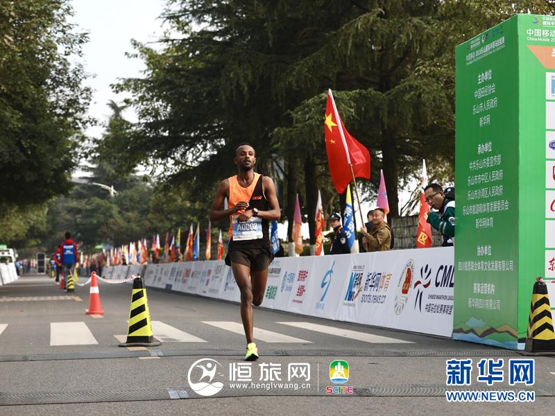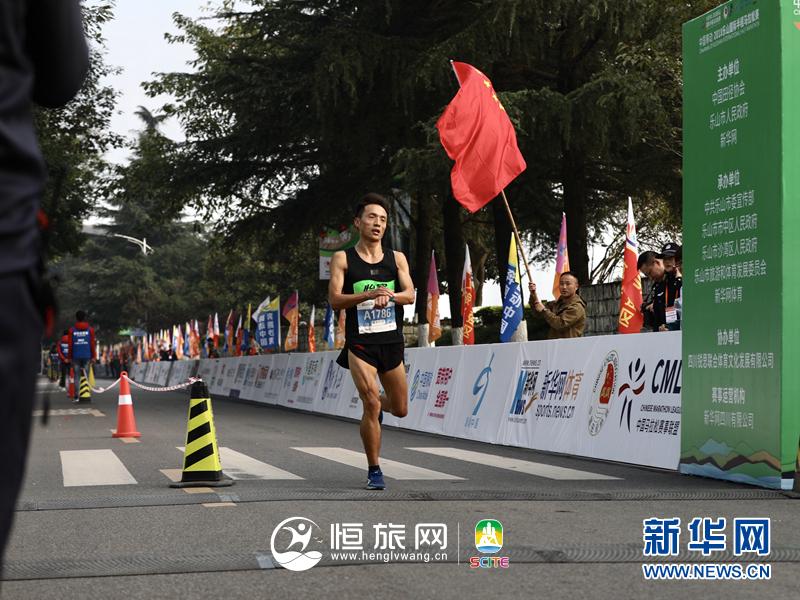 男子组半程马拉松第二名到达终点。新华网王钒摄