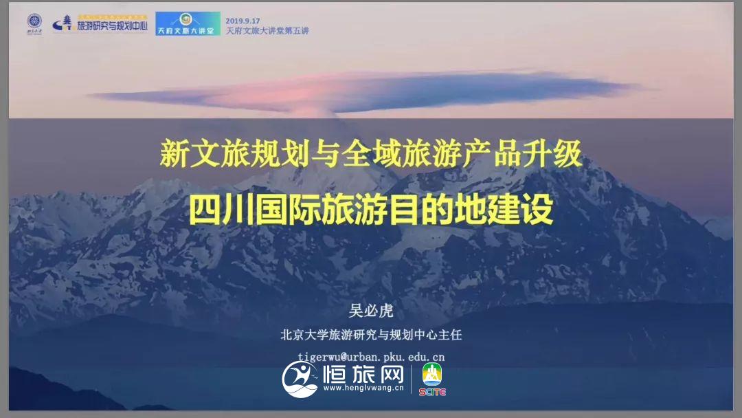 在今天的大讲堂上,吴必虎围绕“文旅规划与全域旅游产品升级”,结合具体案例和规划热点,从新时代文旅发展新诉求、新文旅规划、全域旅游三大方向,详细阐述了国土重构与国土空间规划、人口迁移、消费升级、5G时代、旅游规划的发展与演变、文旅规划的理论方法与案例等,在新时代文化旅游的大背景下回应当今规划热点,为四川打造成为国际旅游目的地建言献策。