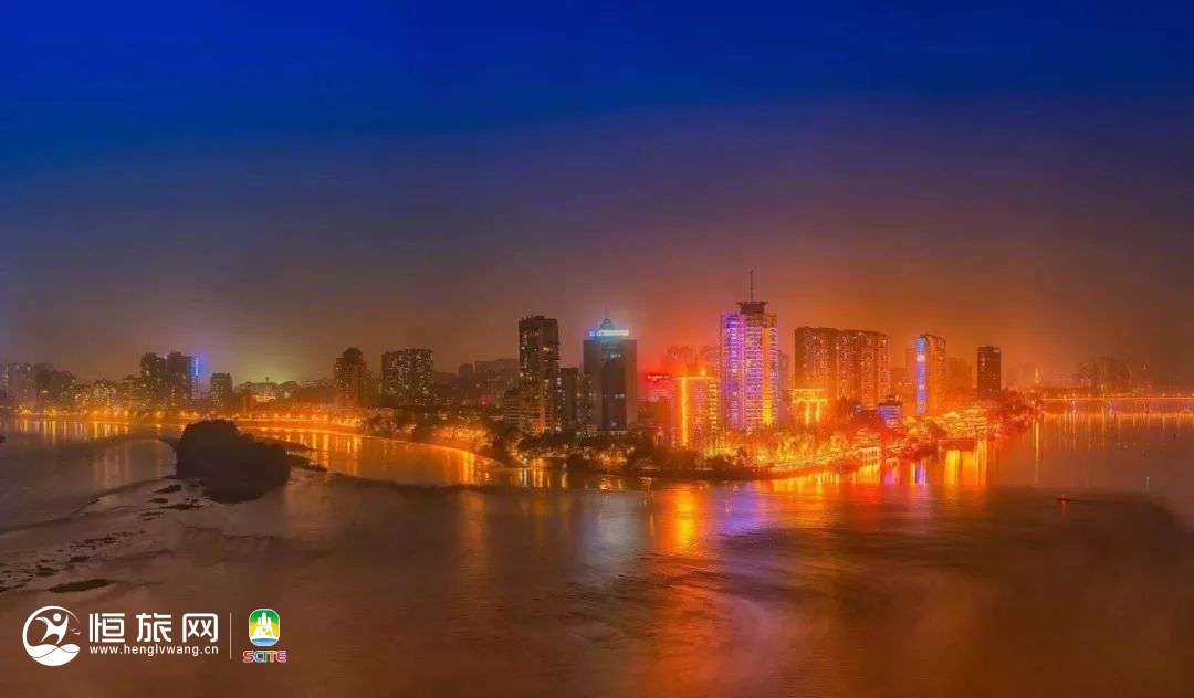 绚丽多彩的灯光洒满了三江水