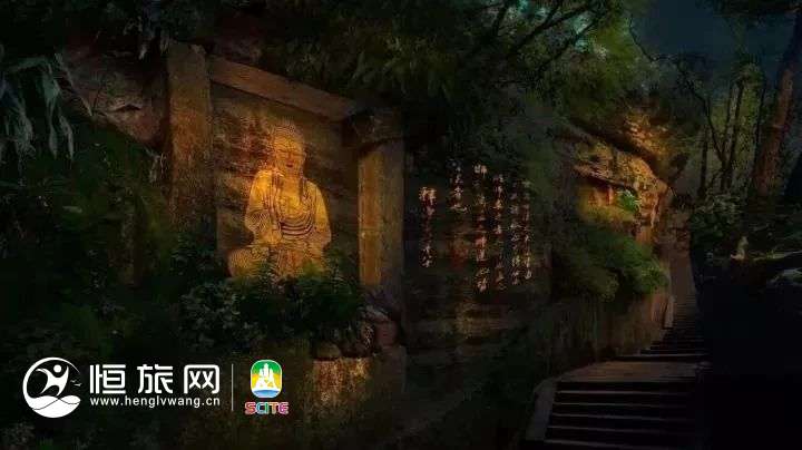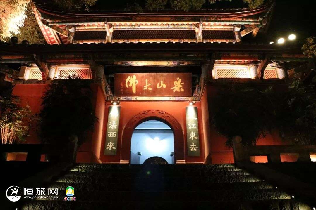 游人在灯火阑珊、光影交织中,漫步凌云山道,近观凌云诗赋,中揽三江汇流,远眺嘉州夜景、峨眉山月,感受时光与历史对话,文化与自然交融的佛禅意蕴。