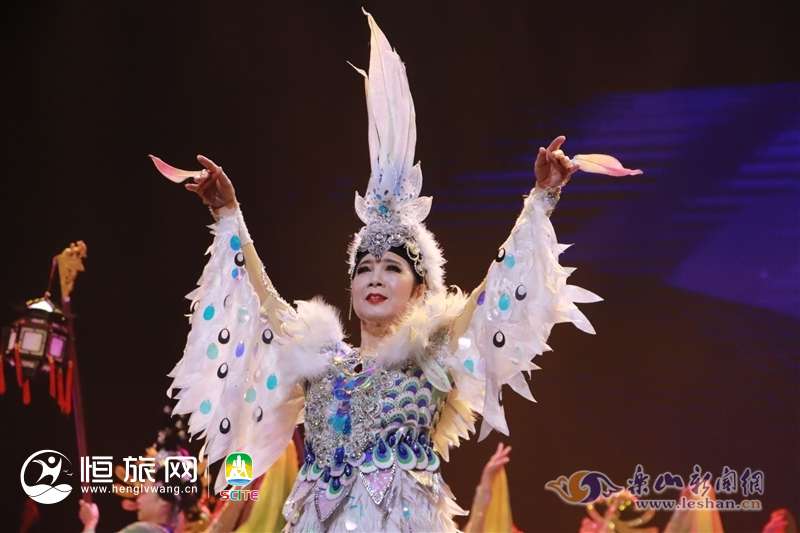 19:30分,演出大幕正式拉开。舞台上大大的太阳神鸟标识,在现代灯光的照耀下,绚烂至极。