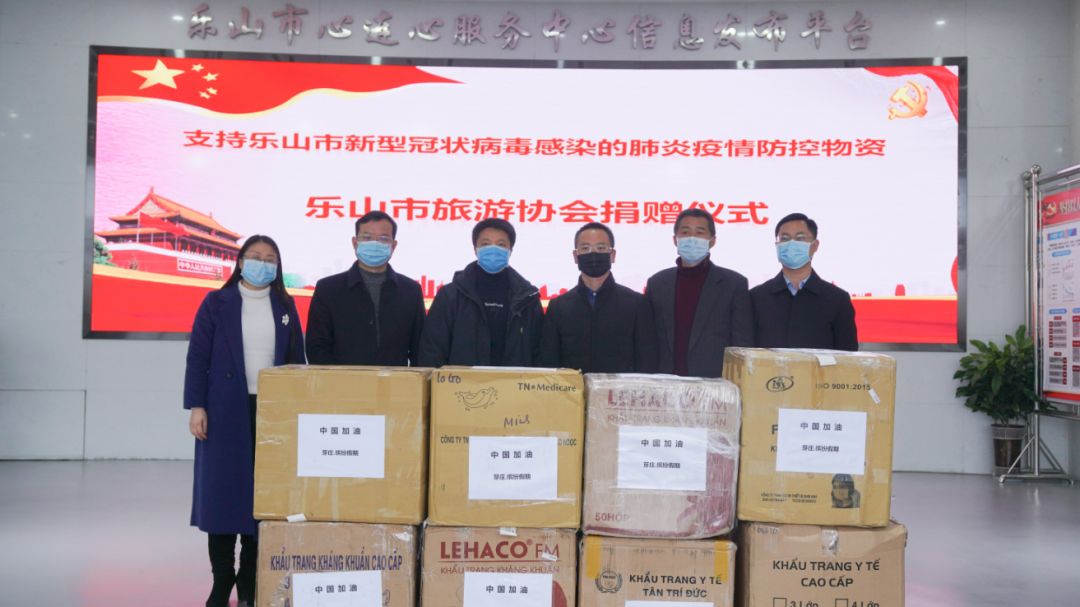 倡议发出后,乐山市在海外的旅游企业和旅游从业人员率先响应,以越南芽庄缤纷国际旅行社为主的旅游企业积极参与。半天时间内收到了来自越南、泰国等地企业所属员工的捐款数万元和国内紧缺的医院口罩,这些物资将利用包机分两批紧急送回国内。