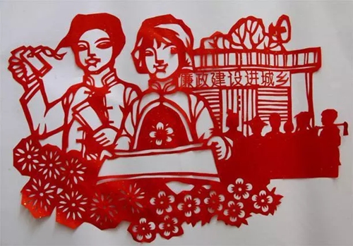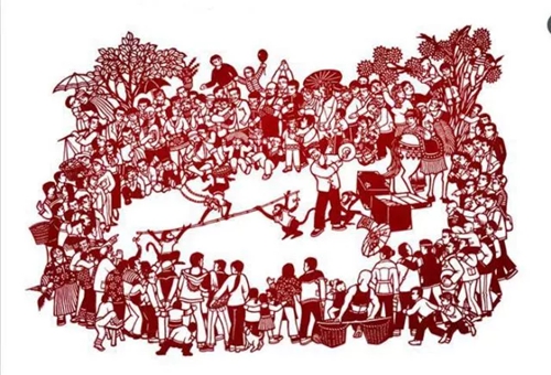 自贡手工剪纸有400多年历史,是一种融诗书画为一体的剪纸艺术。自贡手工剪纸”运用面线结合、块线结合、粗细结合、疏密结合的剪纸技法,形成了独具自贡特色的风格。
