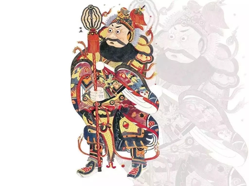 绵竹年画中最具代表性的当属门神,它又分为“武门神”与“文门神”,“武门神”张贴在大门外以期镇宅保安康;“文门神”张贴在堂屋内以期纳福迎祥;童子和仕女等则贴在寝室门上以求子孙繁衍。