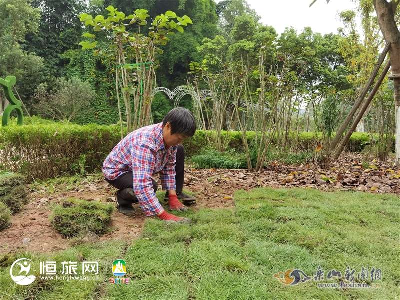上午10点,记者在嘉州绿心公园看到,工人们正在养护花草,建设水保工程,铺设种植土、草皮等,现场忙碌而有序。花田里,风车、绿雕精心布置,田园景观初显。一旁的凉亭里,市民刘瑛正在唱歌。他告诉记者,自己住在嘉州绿心公园附近,每天早上几乎都要到这里来唱歌,公园里环境好,空气好,新打造的景观很用心、很漂亮。