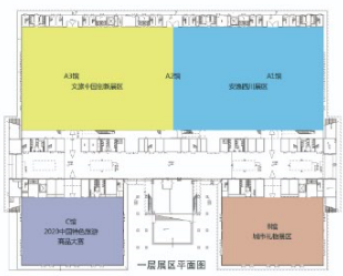 旅博中心一层设置了2020中国特色旅游商品大赛(展)、文旅中国创新展、安逸四川展、城市礼物展4个展馆。