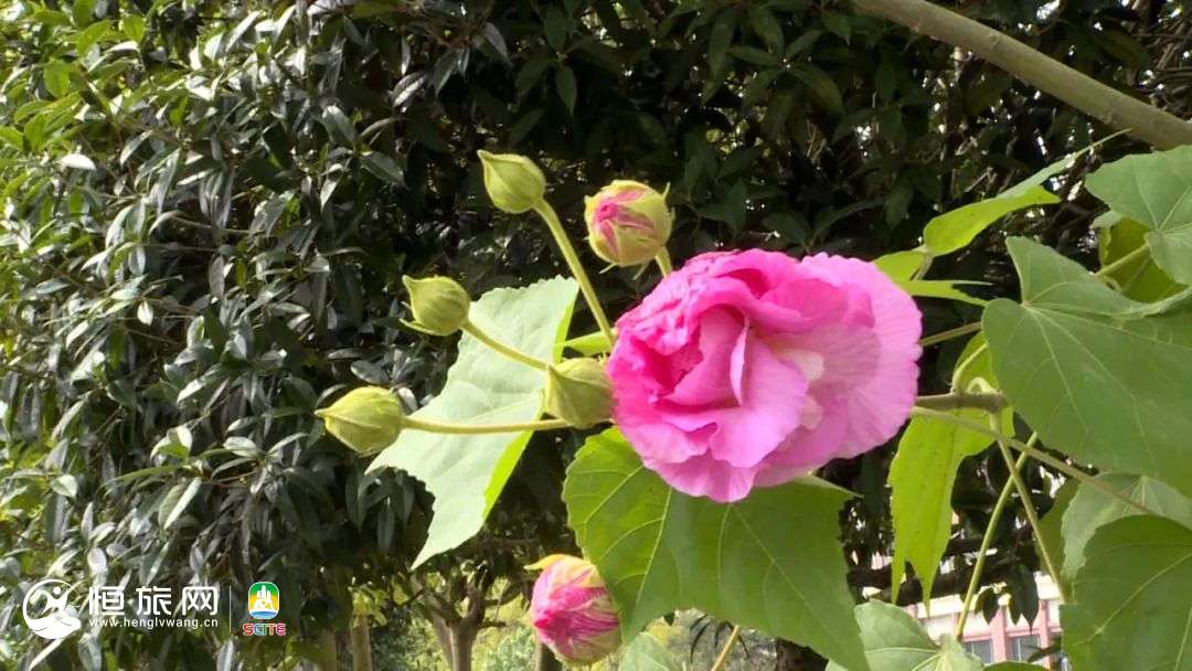 芙蓉花又名木芙蓉、拒霜花、木莲,属锦葵科植物,落叶灌木或小乔木,树高可达7米,清晨开花时呈乳白色或粉红色,傍晚变为深红色。芙蓉用途较广,树皮纤维可搓绳、织布;根、花、叶均可入药,外敷有消肿解毒之功效,大家不妨邀约三两好友,来到户外,欣赏芙蓉花的娇艳与美丽。
