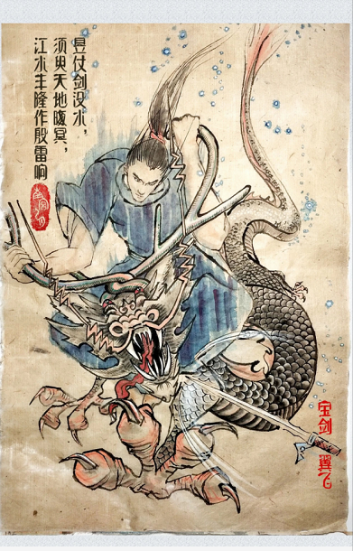 古人常把大洪水归结于蛟龙作祟,称之为“孽龙”。赵昱“斩蛟”治水护城的神话,实是整治岷江航道上的险滩,即今城东挂榜山下伸向岷江河中的九龙滩。今九龙滩已不存,唯滩名流传至今。
