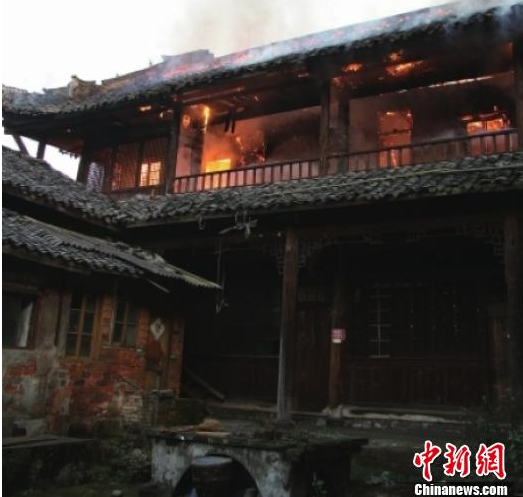 龙神祠是乐山第一批市级文物保护单位,2014年被大火烧毁,因发生火灾的建筑系木结构,一层与二层之间有很厚的木质夹层,起火后大火迅速蔓延将建筑第二层全部吞噬,一座颇具特色的古建筑损毁严重。