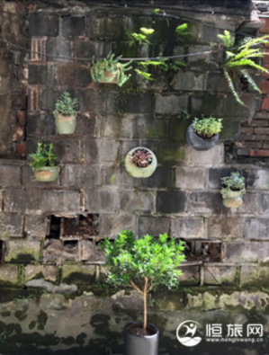 肉肉小院——多肉绿植装饰的小院清新幽静,陈旧木板制作的社会主义核心价值观别致醒目。