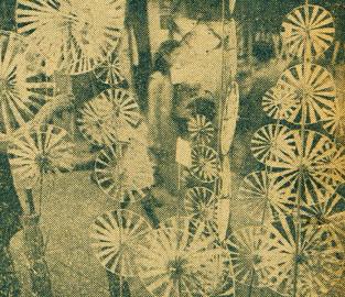 在这批老照片里,还有不少景象容易勾起人的回忆。满街的纸风车就是其中之一。当时的纸风车都是由竹篾条搭建骨架,然后糊上红、黄、蓝等各色的纸条。小孩们将风车拿在手中,人一跑,风车就哗啦啦地转起来,颇有趣味。袁庭栋回忆,当时对于孩子来讲,买糖人也颇有意思。除了现在的用转盘抽糖人形状,还有另一种如今已经基本消失的抽取糖人形状方法,即在一个看不见内部的容器里,人手探进去摸出一个小竹牌。竹牌上写着百家姓,摸到哪个字,就按照百家姓的顺序做糖人的形状。