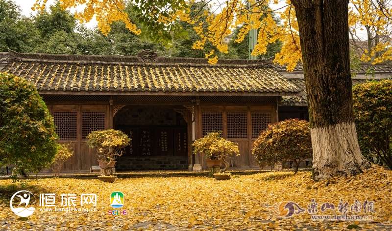 沫若故居:银杏叶落满地金黄