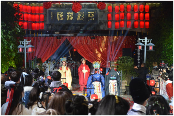 汉服圈KOL袅袅、小鱼儿、伊人、一剑也亲临活动现场,组成天府古镇“华梦四时”汉服天团,与游客和粉丝互动,并给同袍和游客带来一场场唯美的演出。二次元同袍“熊非熊”打卡处引来众多同袍游客拍照合影。