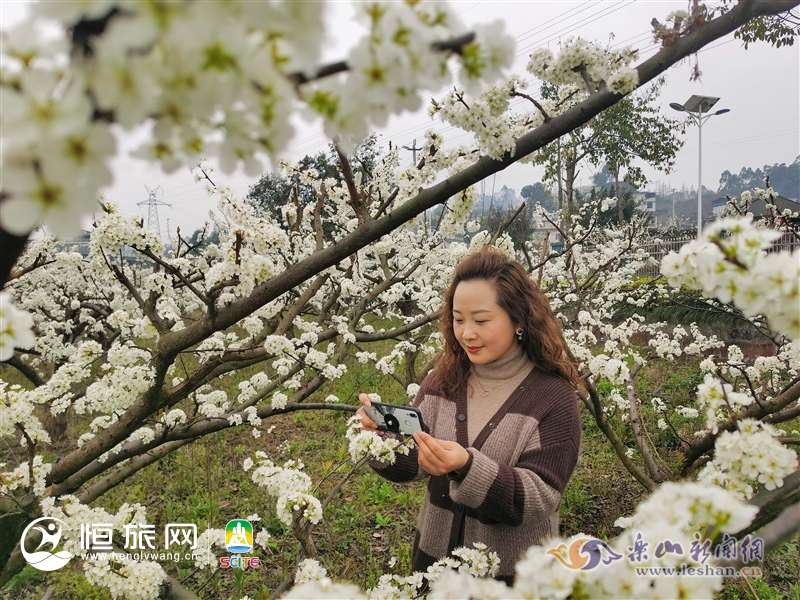 连日来,夹江县青衣街道的凤山社区,千亩李花竞相开放,成为当地一个网红打卡点。