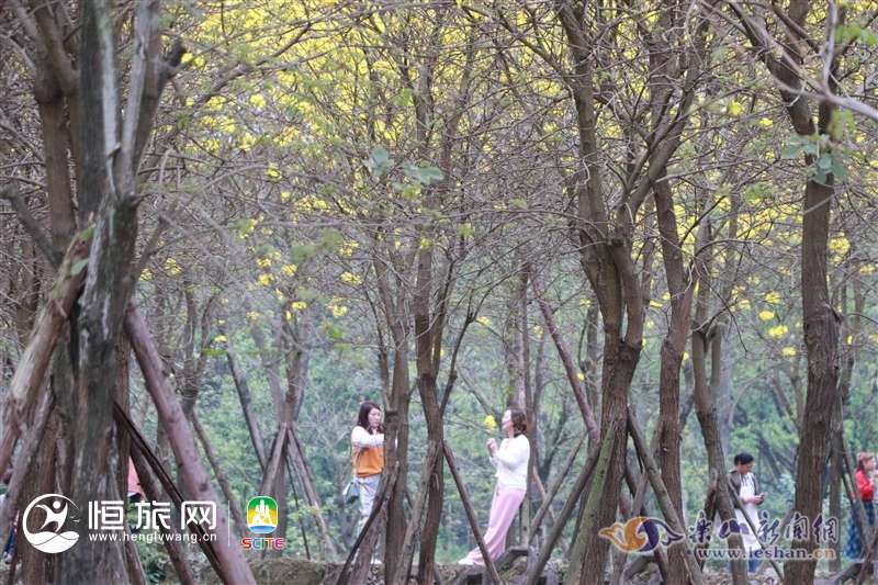 在乐山有几处观赏地,比较近的是市中区凤凰路,因为黄花风铃木的盛放,被网友称为“黄金大道”。在乐山市五通桥区牛华镇三塔村,种植黄花风铃木有80多亩,4000多株,乐山市市中区水口镇龙窝村种植黄花风铃木有300亩,这两处已是一片黄色花海。