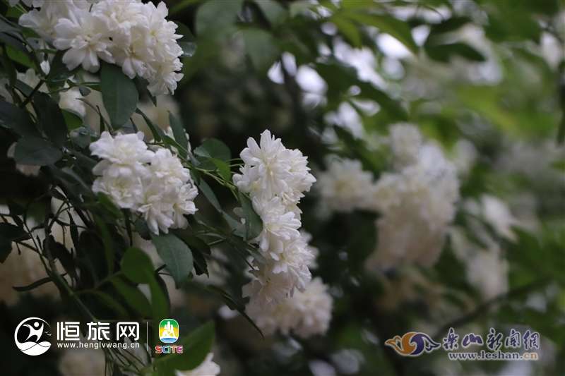 每年三四月份,乐山城区大曲口文化广场一片凉亭被一大片白色的木香花缠绕、包裹,因其散发淡淡香味,被人称之为“七里香”,木香搭乘的凉亭成为市民休闲的好地方。