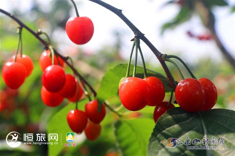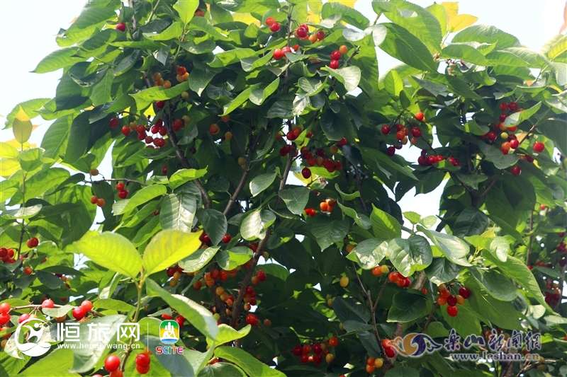 站在樱桃园放眼望去,一颗颗光洁饱满的“水晶樱桃”如灿烂的红宝石镶嵌在翠绿的枝叶间。阳光下,一簇簇樱桃晶莹剔透、惹人垂涎。
