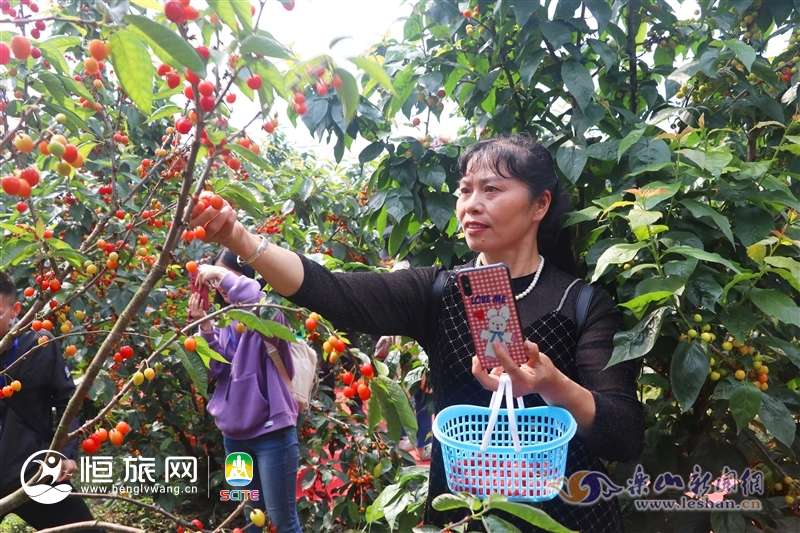 采摘现场,犍为本地人宋成群正带着十多位朋友在现场采摘樱桃,她告诉记者,芭沟镇的水晶樱桃又红又甜,自己和朋友非常喜欢。