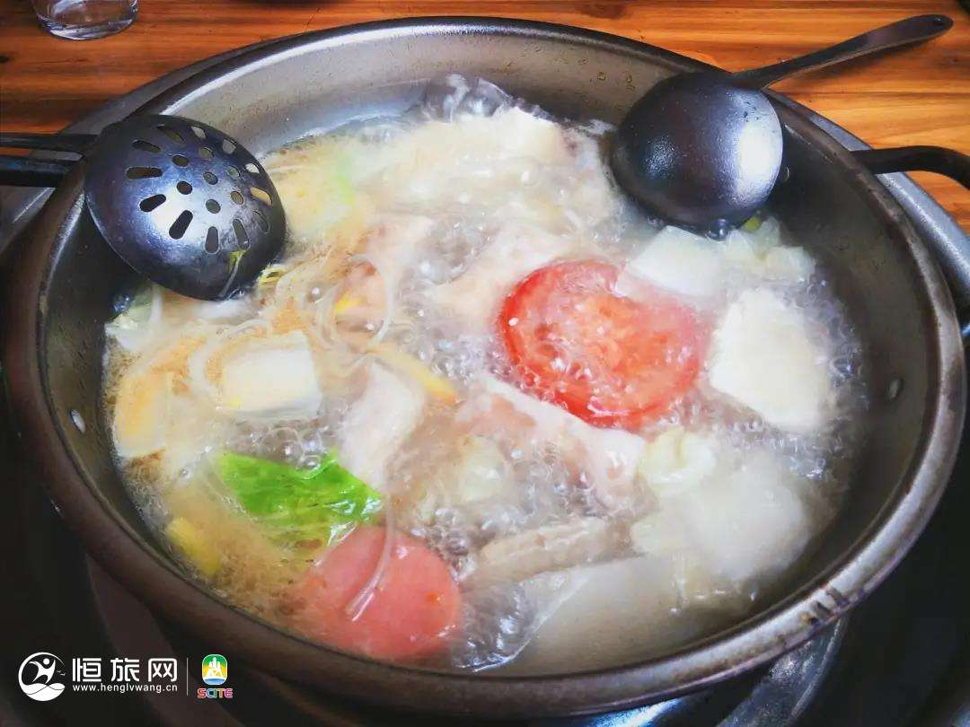 细嫩的豆花加酥肉、菌菇、番茄等煮成一锅