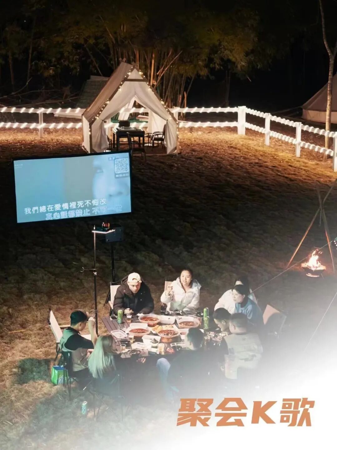 天黑了还可以边喝酒边K歌,看坝坝电影,体验露营帐篷(也可自带),远离城市喧嚣。虽然天气已经变冷,但朋友围坐、聚会聊天的氛围依旧火热,想想都巴适得板!
