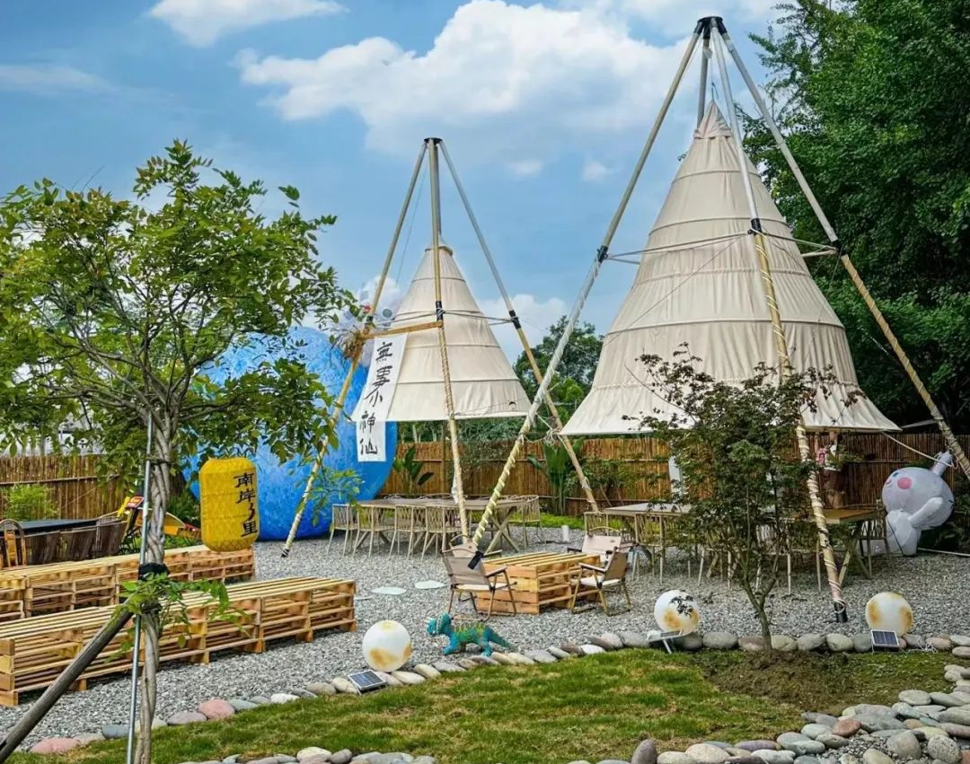 这里项目丰富,有大草坪团建、户外烧烤、牛排、下午茶、露营小火锅、帐篷民宿、营地小酒馆、精灵农场、趣味菜园、沙滩乐园等等,从早玩到晚都没问题。
