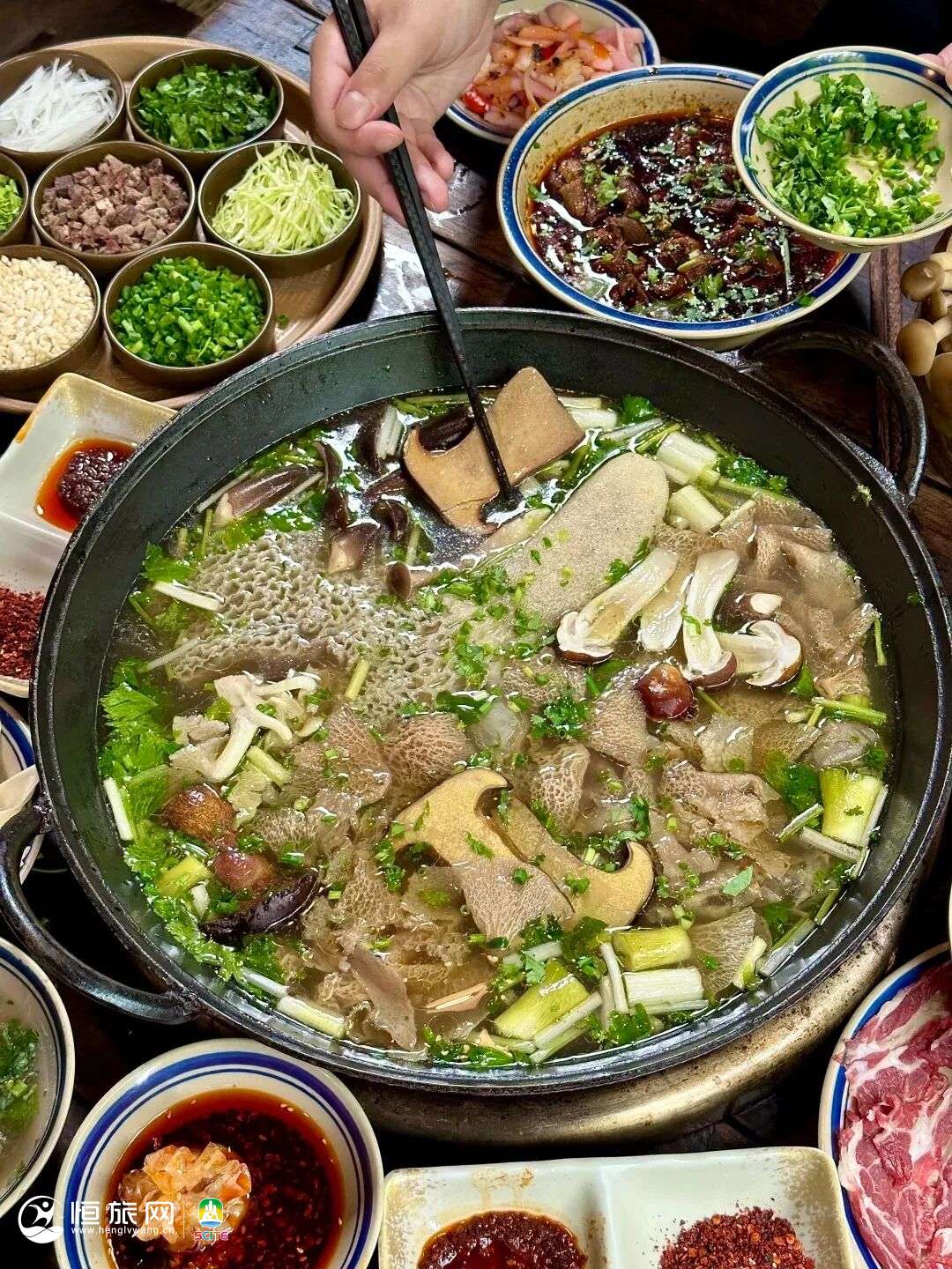 你没看错,跷脚牛肉店也能吃到好吃的菌子汤!清汤的锅底不仅可以烫牛肉,搭配长裙竹荪、竹胎盘也是一绝!菌子煮完记得先喝一碗汤,另外这个煮抄手也特别鲜!