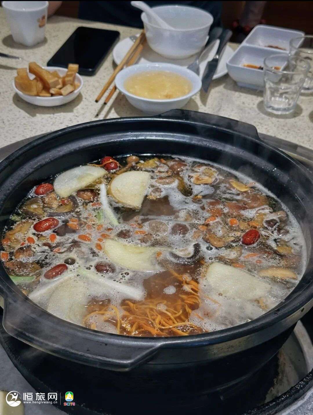 也是新开的一家店,香甜无花果锅底,一端上来就闻到扑鼻的鲜香,里面满满的都是料,红枣、枸杞、五指毛桃、荔枝还有多种珍贵药材,滋补养生这块狠狠拿捏了!