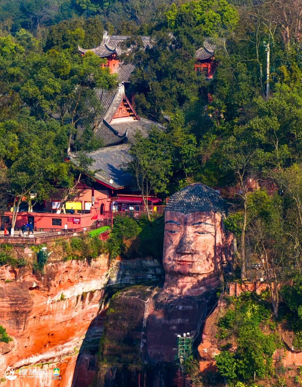乐山大佛通高71米,位于凌云山西侧,大渡河、青衣江与岷江的三江汇流处,是世界上最高大的摩崖石刻弥勒佛造像!