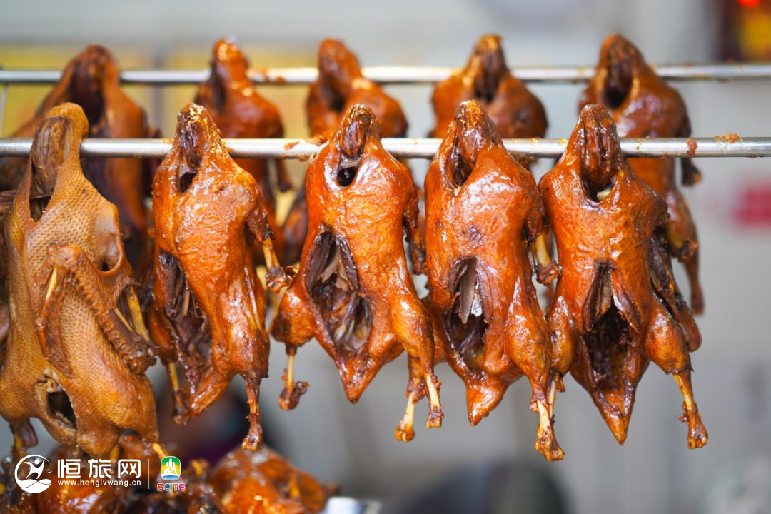 甜皮鸭的制作工艺极为讲究,鸭子要先用十多种香料腌制,再经过烫皮、刷糖、油炸等多道工序。刚出锅的甜皮鸭皮酥肉嫩,糖衣晶莹,在购买后两小时内食用味道最佳!