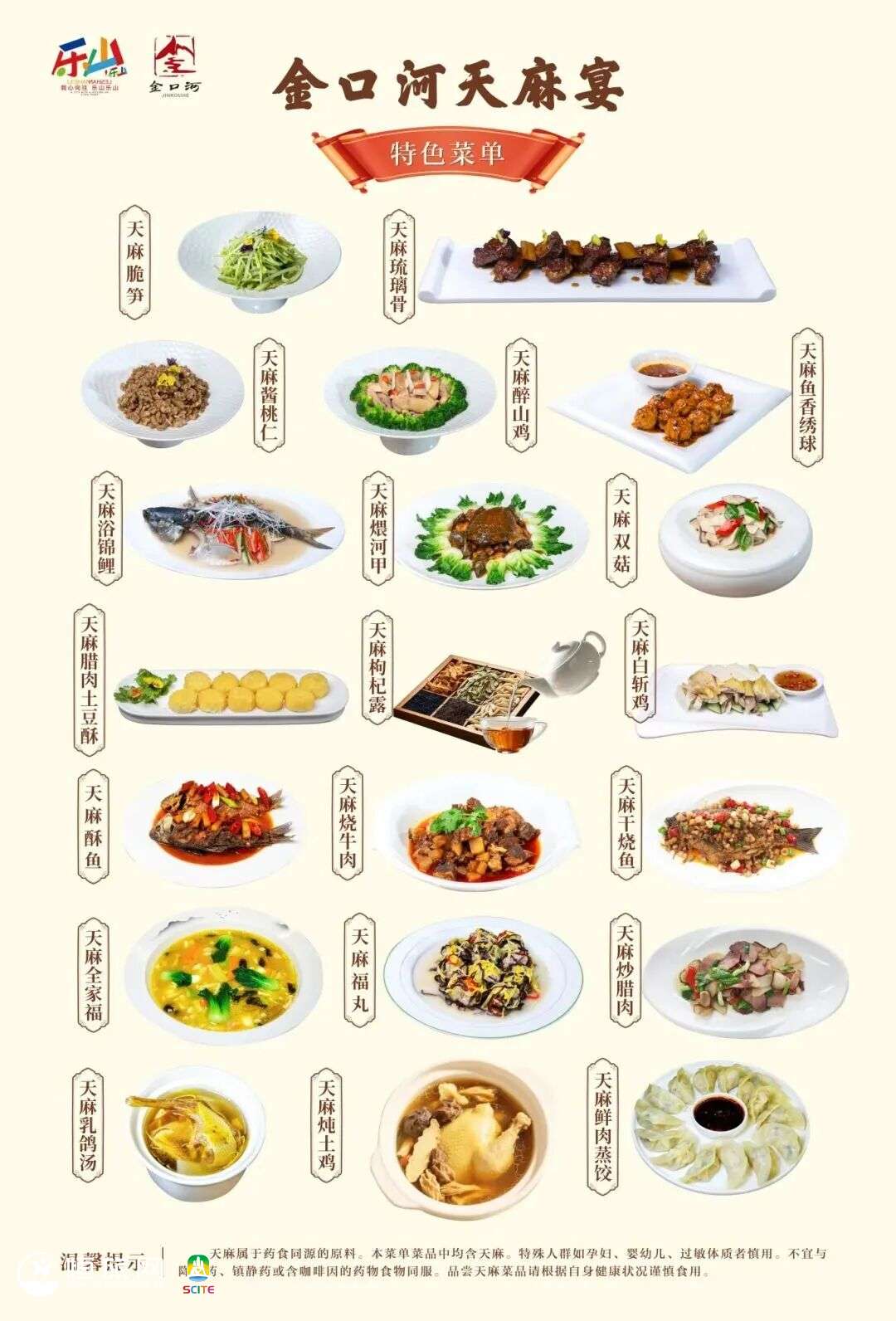 天麻宴:金口河作为“中国乌天麻之乡”,依托入选“药食同源”物质目录的乌天麻,在乐山职业技术学院专家团队指导下,融合传统药膳智慧与川菜技艺,研发出独具风味的“金口河天麻宴”。该宴选用本地乌天麻,搭配羊肉、土鸡等优质食材,通过煎、炸、炖、煮等多种烹饪方式,制成一系列兼具健康与美味的特色菜品。目前,《金口河天麻宴标准化菜单》已正式发布,并在全区酒店、餐馆常态化推广,成为集养生、风味与文旅融合于一体的地方美食新名片。