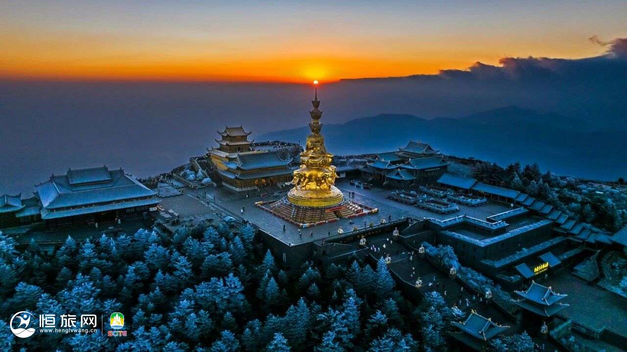 冬至后气温走低,峨眉山金顶跌破零度,高山覆雪披银装。今冬首场大雪落罢,山间景致更显空灵 —— 清晨红日破云海,金光漫染雪寺,云海与雪景交辉成仙境;午后阳光穿林,雪地泛着粼粼波光,恍入静谧冰雪秘境。夜幕降临,赴一场暖汤之约,冰雪清冷与温泉暖意交织,治愈所有冬日疲惫。