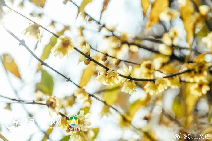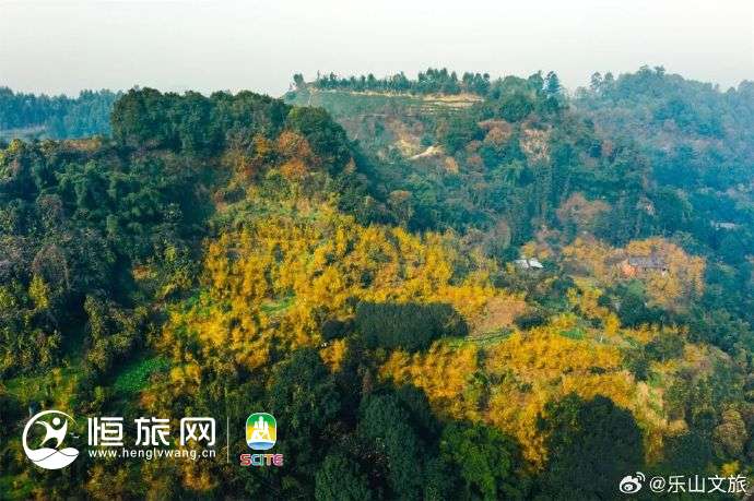 【五通桥柑子村】五通桥柑子村的蜡梅种植基地里,满山的金黄映入眼帘,漂亮至极。这个时节走进蜡梅林中,更是幽香阵阵、沁人心脾。