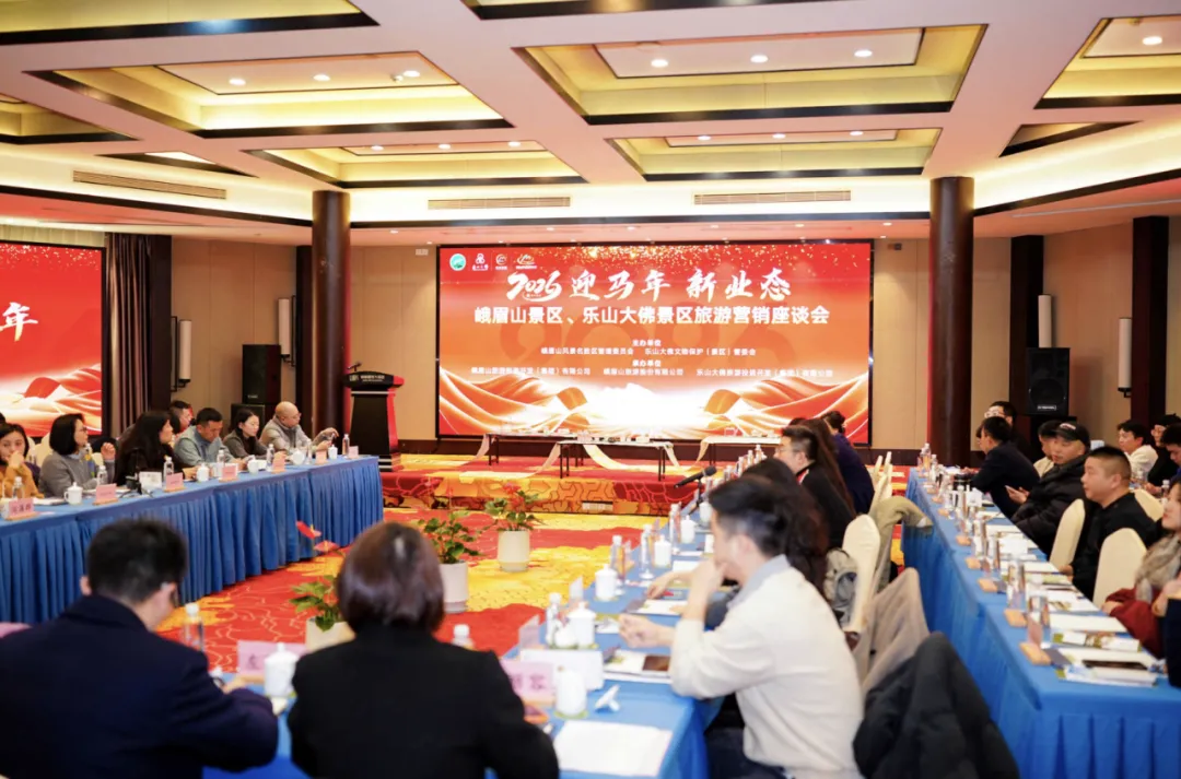 日前,峨眉山与乐山大佛景区在成都召开了“迎马年新业态”旅游营销座谈会,约120名相关单位代表参会。会议制定了2026年营销合作计划,表彰了2025年贡献单位,并明确将继续深化协作,共促文旅发展。