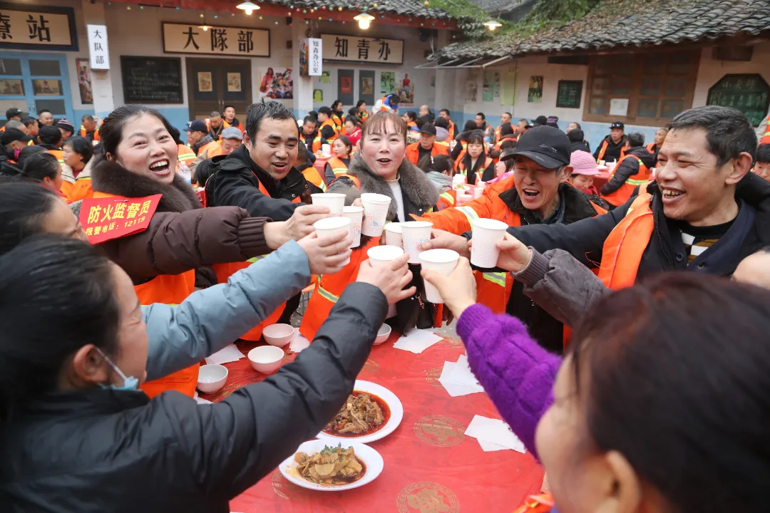 峨眉山市300余名环卫工人同吃团圆饭 李应林摄