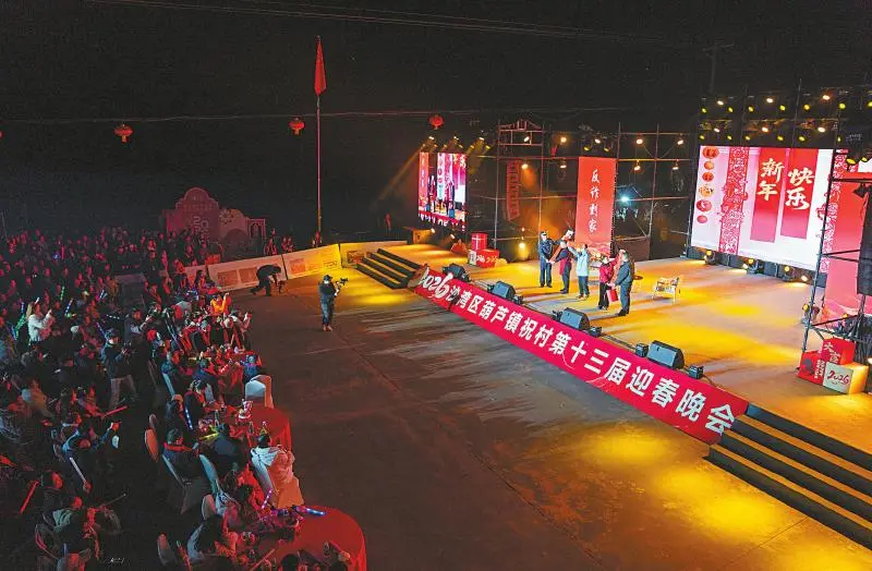 19时,祝希与其他3位主持人走上舞台,祝村第十三届“村晚”拉开帷幕。