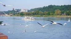 随着我区生态环境的改善,水质的提高,近日,在中心城区的岷江边上迎来了一大群小客人——红嘴鸥~