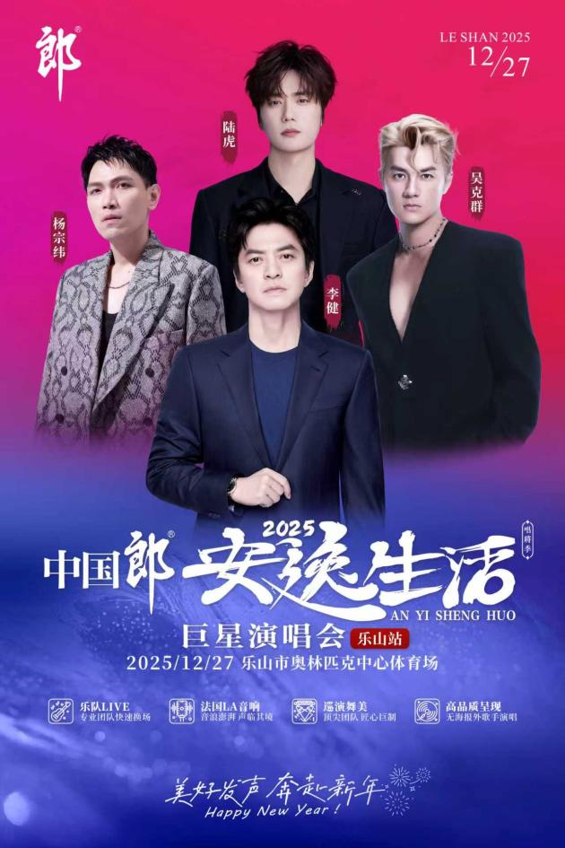 2025年12月4日 11:2025年12月27日中国郎•2025安逸生活巨星演唱会将在乐山奥体中心举行李健、吴克群、杨宗纬、陆虎四大唱将邀你一起为