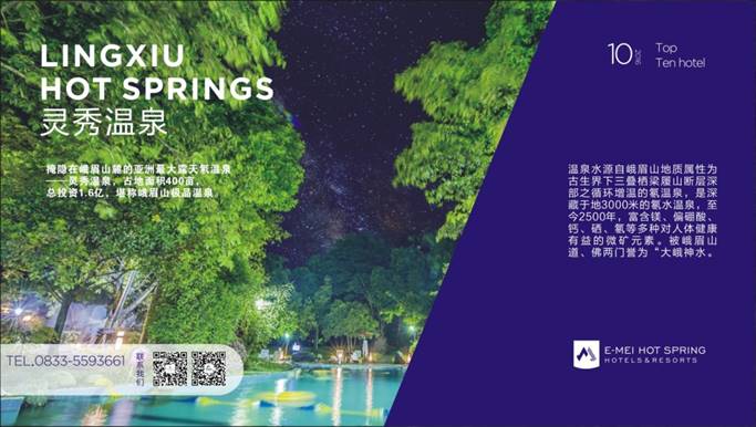 这是一家集温泉疗养、休闲度假、生态人居为一体的园林温泉酒店,占地面积400亩,采用四合院构造,依峨眉山而建,立灵秀湖湖畔。绿化覆盖率达75%以上,将饭店建筑巧妙融入大自然,是名副其实的天然氧吧。