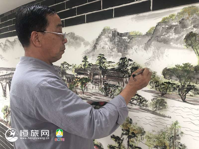 据了解,这些水墨画卷总长60米左右,以张公桥为起点乐山师院的北斗山为终点,从前期的设计到完成整整花费了半年时间,由海棠书画院的8位画家共同完成。这样美丽的水墨画,引得不少市民游客驻足欣赏。