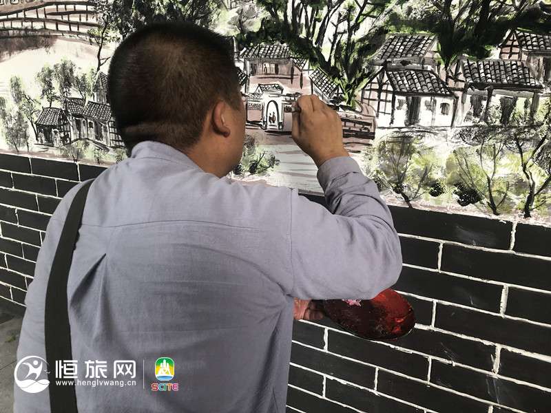 海棠书画院秘书长钟华说:“我们受到清明上河图的启发,也画一幅乐山的‘清明上河图’。”(记者:何思源)